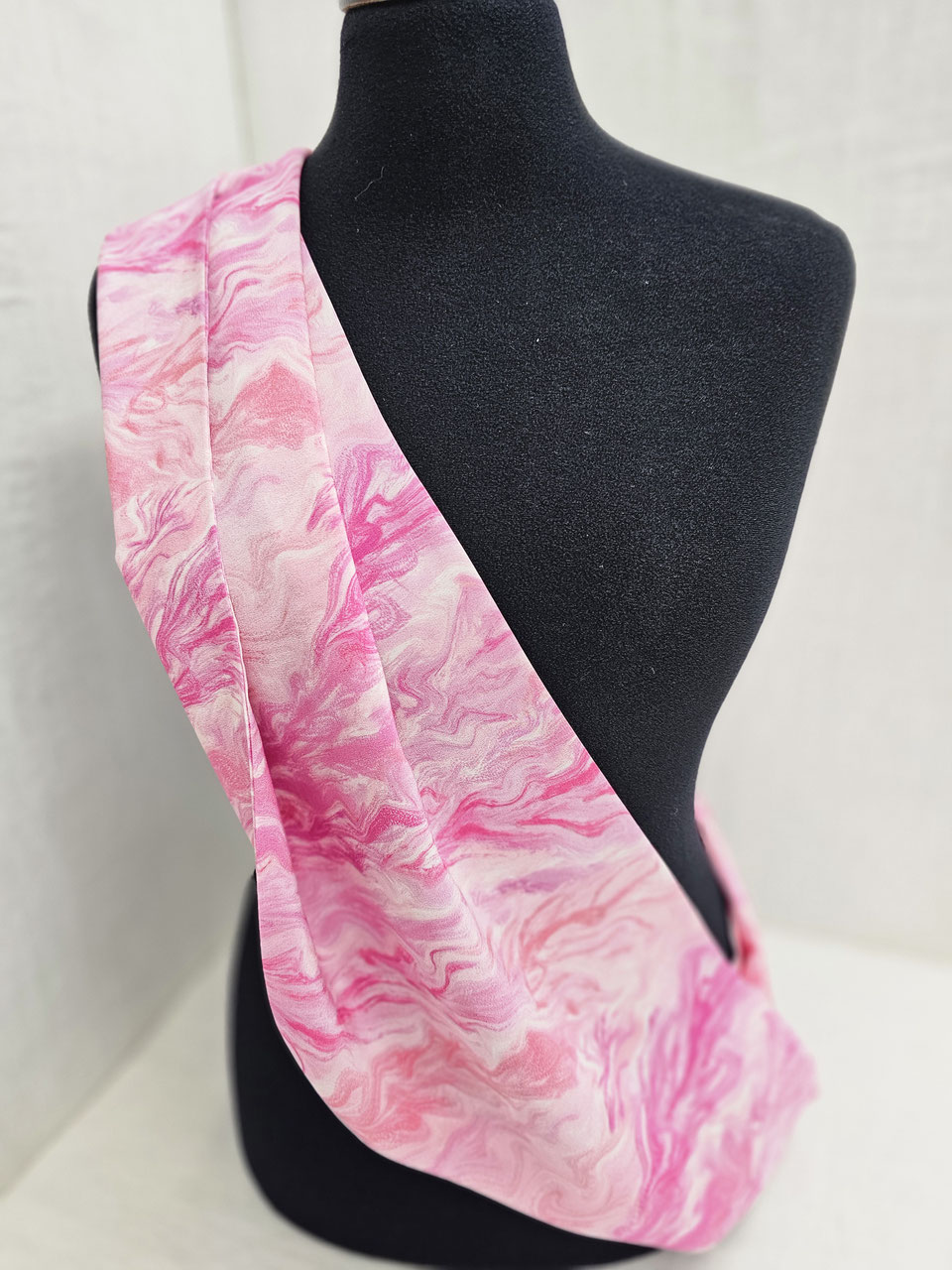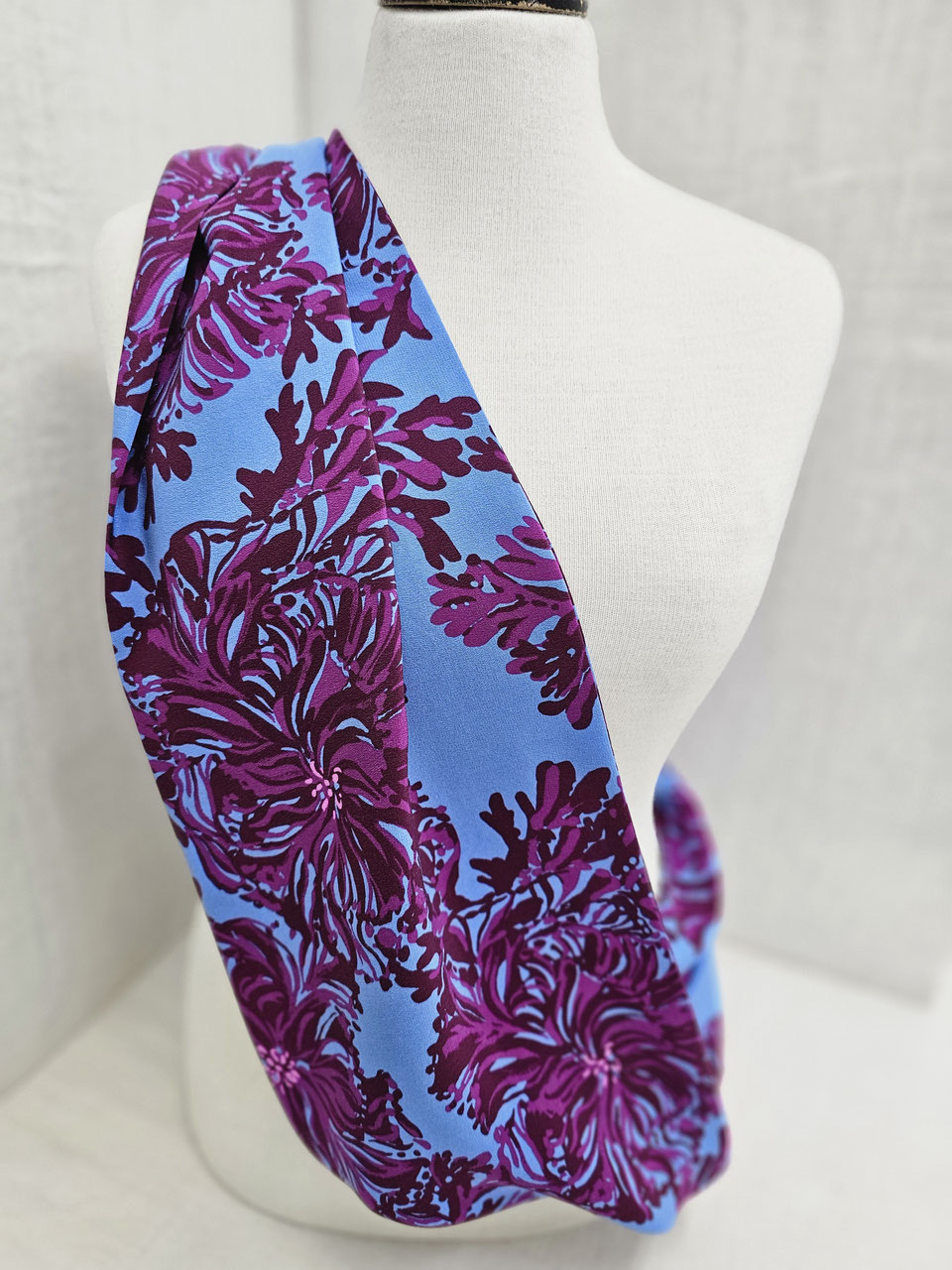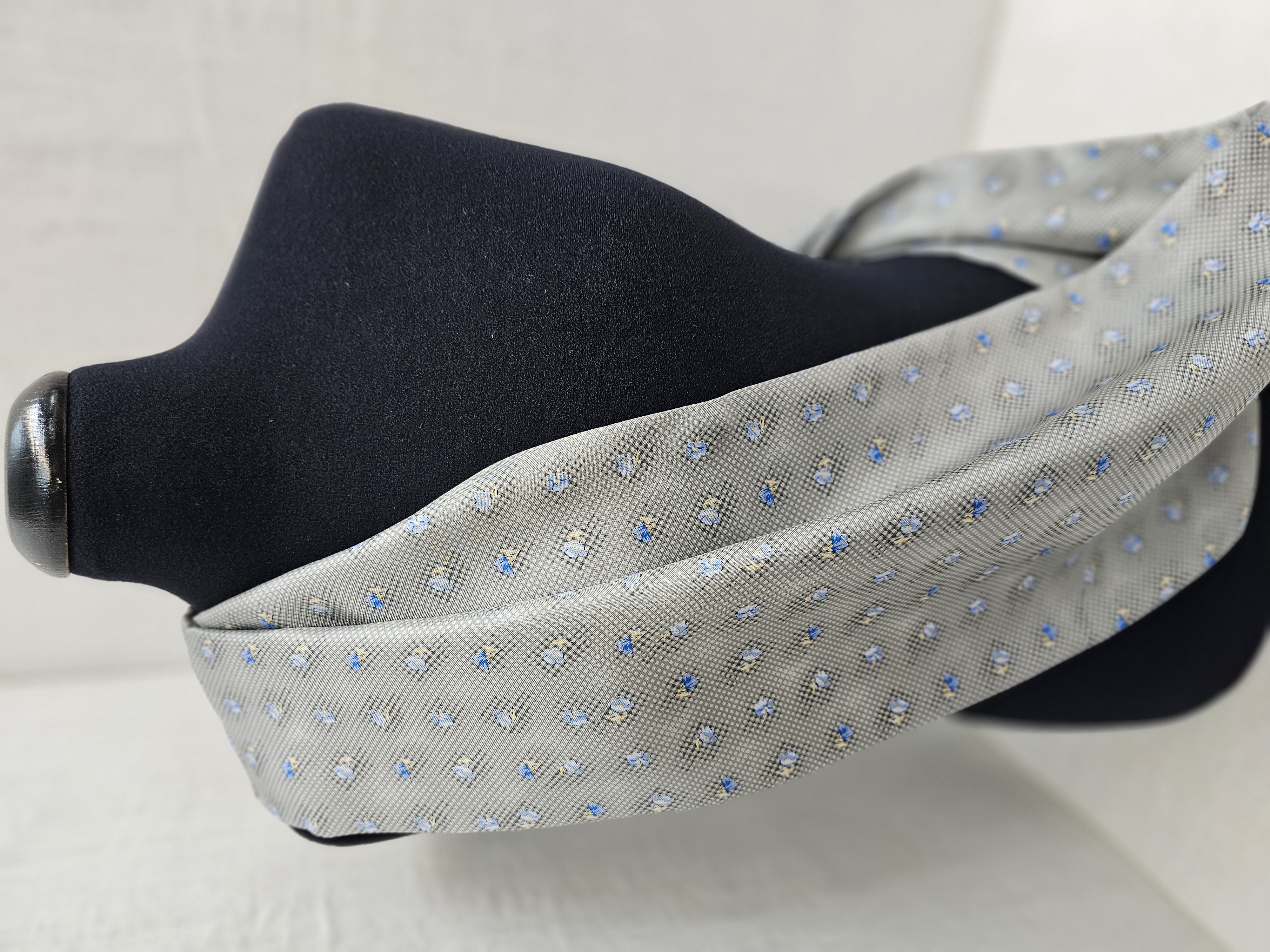 Französischer Leinen in Weiss und Hellblau, kombiniert mit eine Seiden-Moussline in Dunkelblau mit kleinen weissen Sternen 26 x ca 138cm
