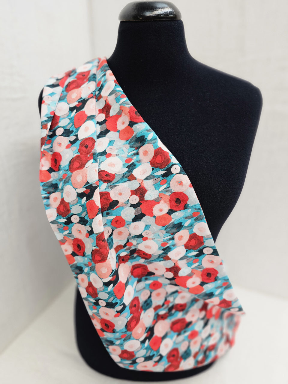 100% Crêpe de Chine und Jacquard. Kombination verschiedener Seidenstoffe in Dunkelblau, Rot, Grau, 16,5 x 146cm