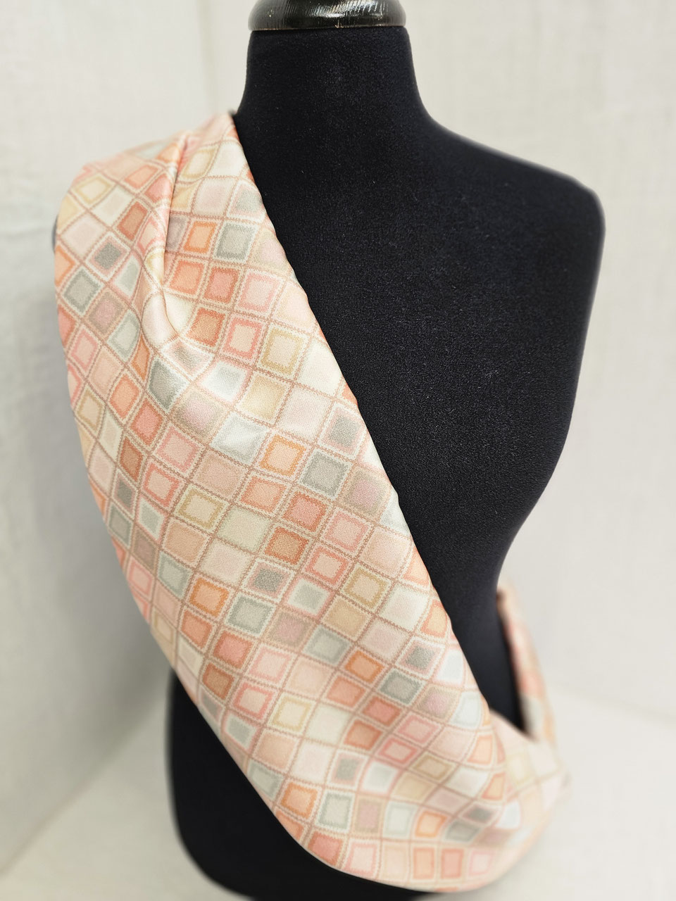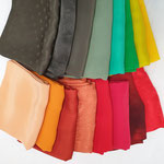 100% Crêpe de Chine, Crêpe Satin und Jacquard Satin. Kombination verschiedener Seidenstoffe in warmen Farben, ca. 16.5 x 146cm