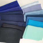 100% Crêpe de Chine und Twill. Kombination verschiedener Seidenstoffe in Dunkelblau und Offwhite, ca. 17 x 145/146cm