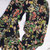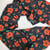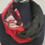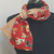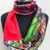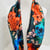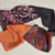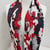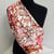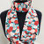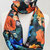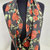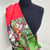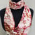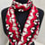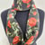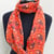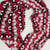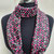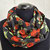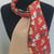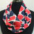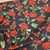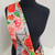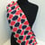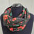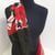 Französischer Leinen in Schwarz, kombiniert mit zwei Seidenstoffen (Blumen-Moussline sowie Rot mit kleinen Tüpfchen) 26 x ca 138cm