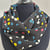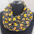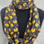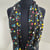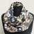 Französischer Leinen in Off Schwarz, Türkis, Weiss, kombiniert mit grossgepunkteter Seide , Schwarz abgenäht, 26 x ca 142cm