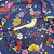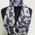 100% Crêpe de Chine, weisse Sterne auf blauem Grund