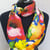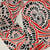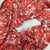 100% Jacquard mit eingewobenen glänzenden Punkten, Hunde auf rotem Grund